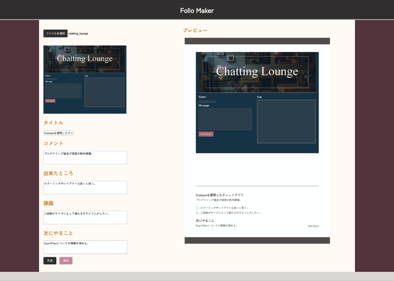 | 作品ページ | https://garnier1909.github.io/Folio_Maker/ |
